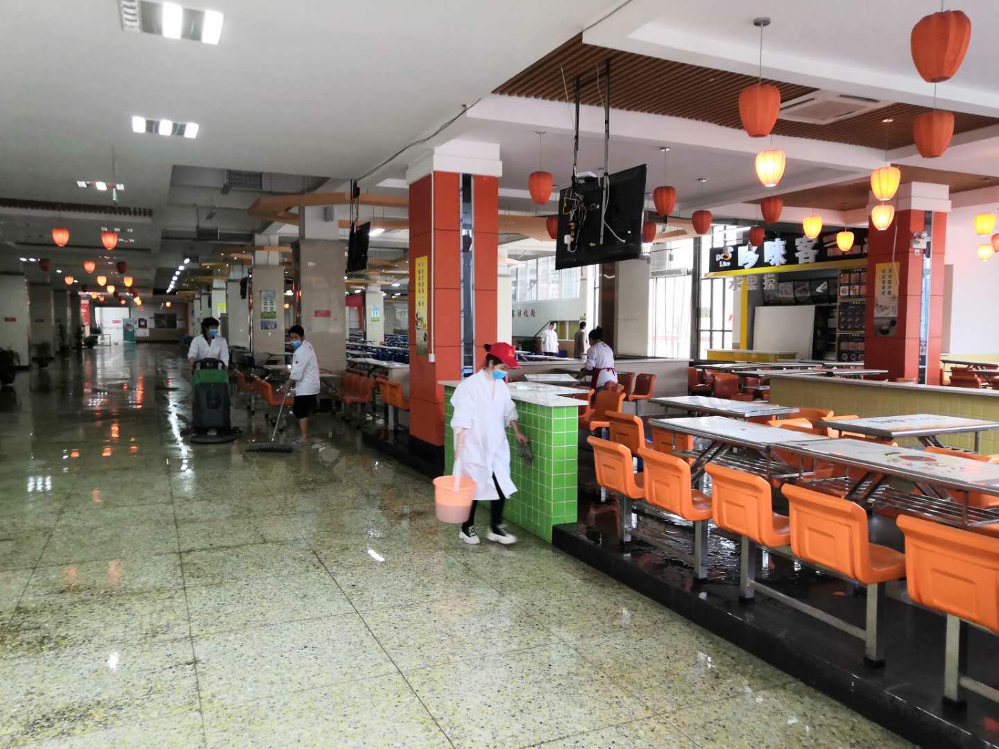 活动中,大家热情饱满,撸起袖子,拿起抹布,挥舞扫帚,热火朝天地开展卫生大扫除,聚焦食堂、卫生间、垃圾清运点、排污水沟等卫生死角、盲区、重点部位进行彻底清扫消毒,对办公室墙角桌底、楼道拐角、门把手、扶梯等细心擦洗,并用75%的酒精进行全面消毒。有效防止细菌、病毒滋生,全处上下齐心,分工协作,共同打造靓丽的校园环境,筑牢师生安康防护线。
