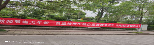 在第36个教师节来临之际,后产处饮食中心、中快餐饮公司以及院学生会运用横幅、宣传海报等形式为教师节营造氛围。