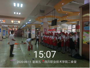 高校食堂消防安全一直是备受人们关注和事故发生的重要事发地,不仅影响食堂正常运行,而且也影响学校的安全稳定。根据工作计划,学生一、二食堂在2020年9月11日下午特地组织一次消防培训和演练,并荣幸的请到学院保卫处消防科曾志友科长为2个食堂80余名员工讲解消防安全隐患发生、灭火器材的使用以及消防的基本常识。学院后产处饮食中心、中快餐饮集团相关人员参加了此次活动。