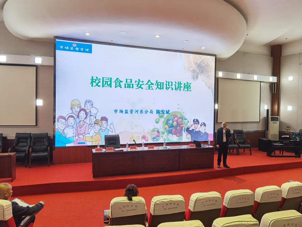 培训会上,特邀了遂宁市市场监督管理局河东分局陈发斌局长做“校园食品安全知识”专题讲座,重点介绍了食品安全基本术语及定义的理解,对深刻认识食品安全的重要性、校园食品安全存在的主要问题、筑牢食品安全底线采取的主要措施、以及违反食品安全法、食品安全条例应负的法律责任等五个方面进行了详细而有针对性的讲解和现场互动;列举了两个鲜活案例,谆谆告诫在座每一个食品从业者,食品生产经营安全可管、可控,食品安全是底线,也是红线,只有安全才有效益,才有每一个人的安宁和家庭的幸福。