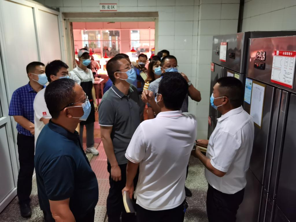检查过程中,胥局长一行深入到食堂主食库、副食库、洗消间、加工间、售卖间等场所,认真听取负责人关于新学年开校和国庆期间的准备和安排。