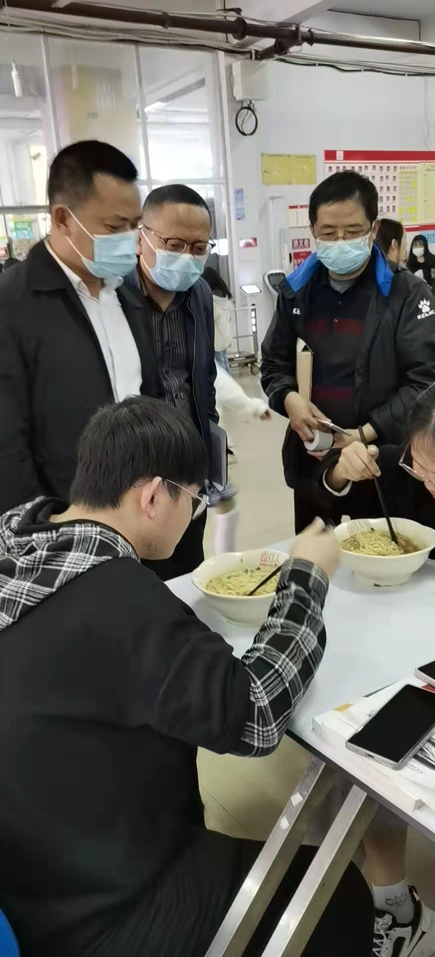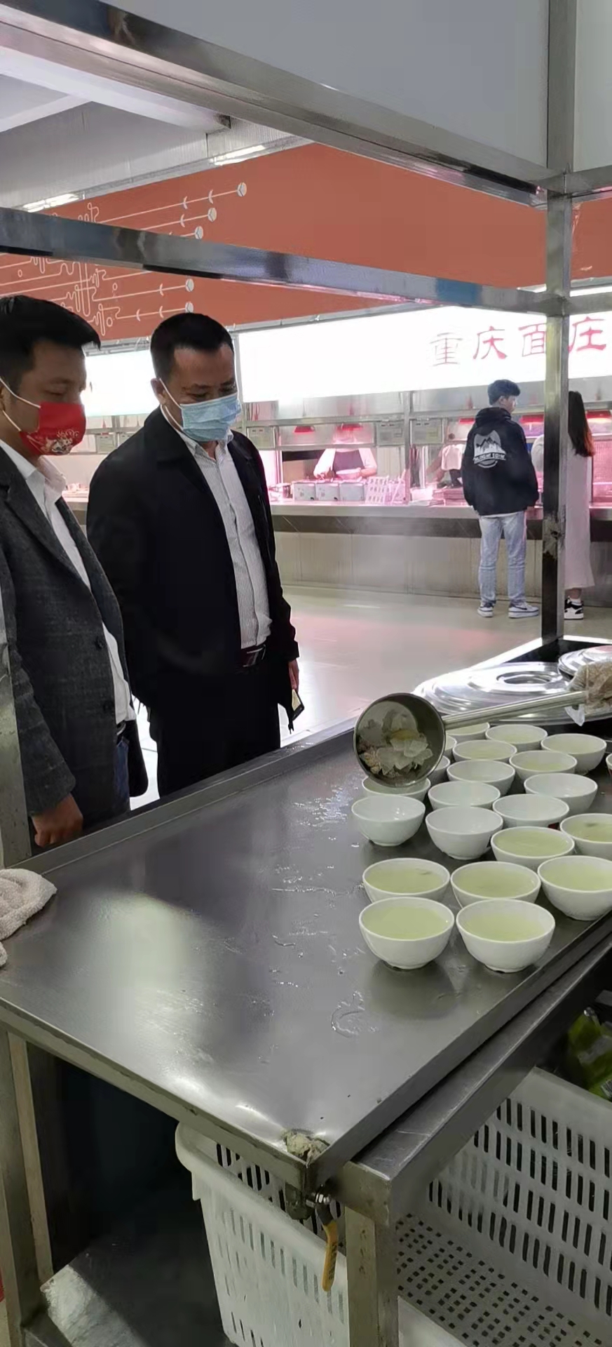胥长寿查看了食堂操作间和餐厅的环境卫生、人员管理、食材品种、菜品价格等,了解了学校后勤部门落实食品安全、消防安全等具体事项的开展情况。在餐桌旁,胥长寿与正在就餐的学生就饭菜味道是否合口、种类数量是否充足、饭菜价格是否合理、卫生状况是否满意等问题进行亲切交谈,并与窗口经营者就经营情况、使用原材料来源等相关问题进行了详细询问。胥长寿要求相关部门认真做好食品安全教育,不断提升服务质量,要保障饭菜质量和品种供应,让每一位学生吃上可口的饭菜。