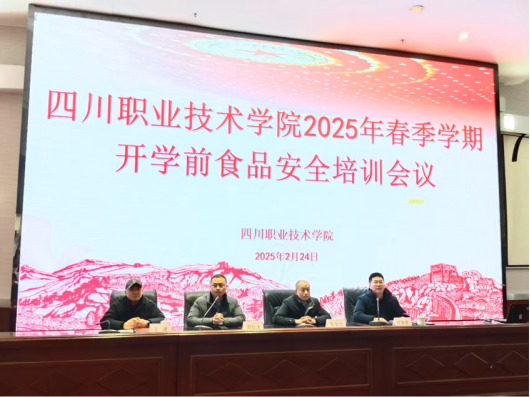 为全力做好春季学期开学前的食品安全各项准备工作,有效提升学校各食堂食品安全管理水平,严格落实食品安全主体责任,增强学校食堂从业人员食品安全意识,2月24日,我校联合遂宁市市场监管局召开四川职业技术学院2025年春季学期开学前食品安全培训会议。