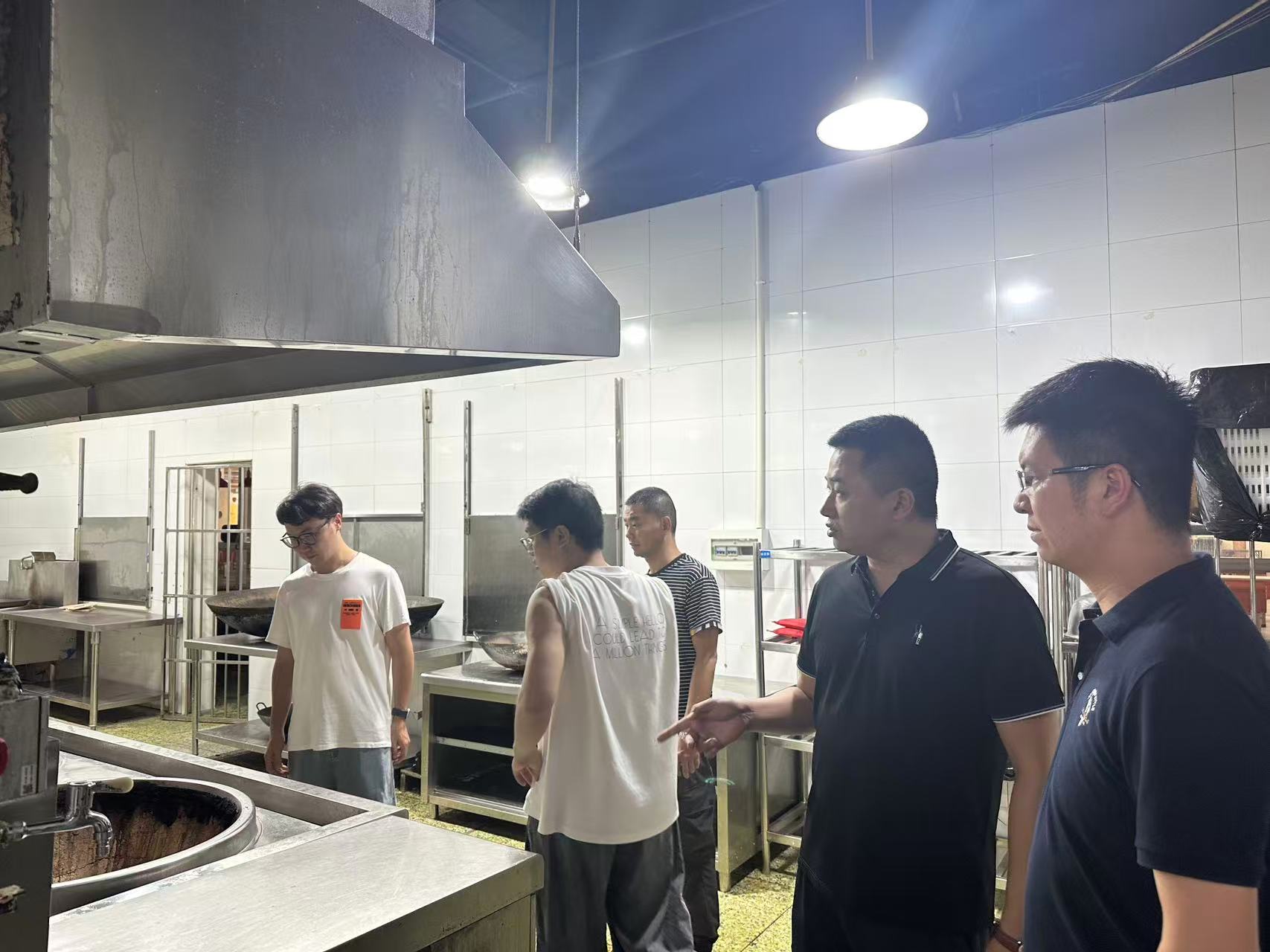 现场对河东校区食堂厨房油烟管道清洗记录、油烟管道及排烟罩油污状况、火灾隐患等进行了检查排查。特别针对学校食品安全,重点检查了原料采购储存规范、餐厨设备清洗消毒流程、餐厨废物处置情况,切实严守食品安全底线。