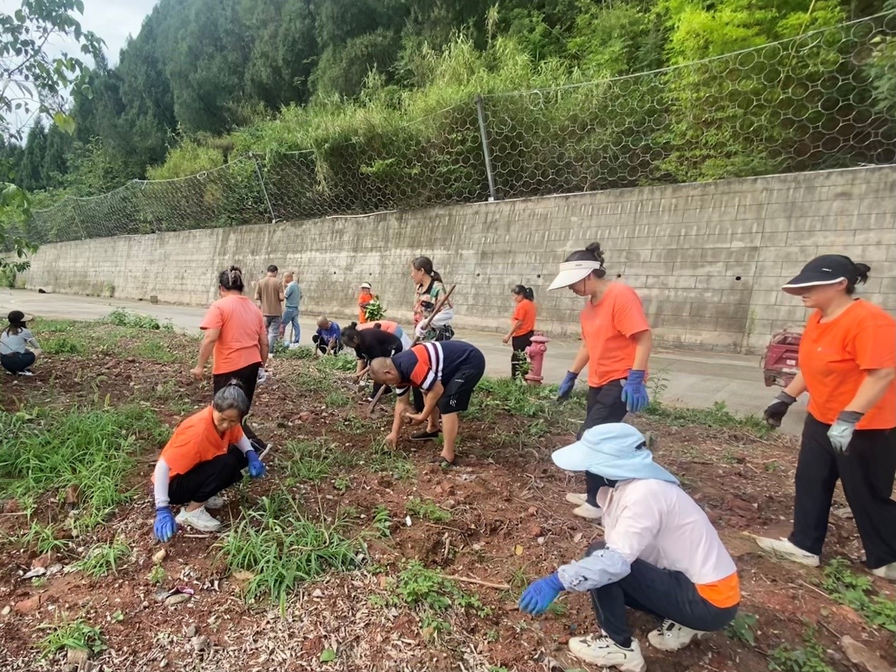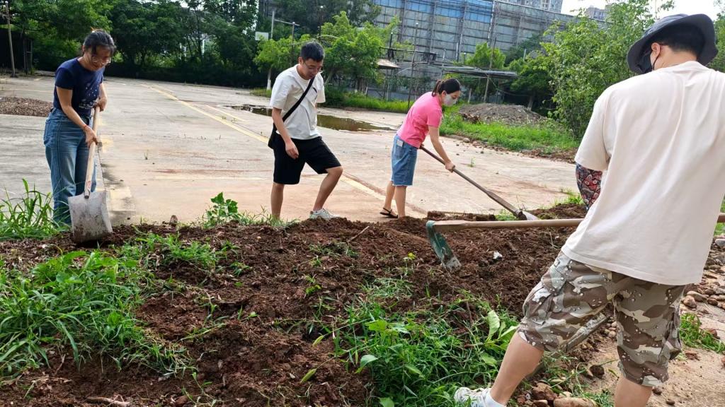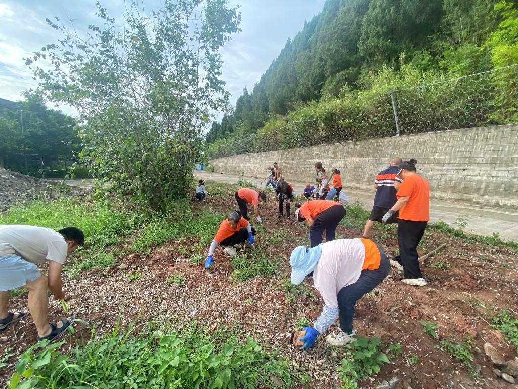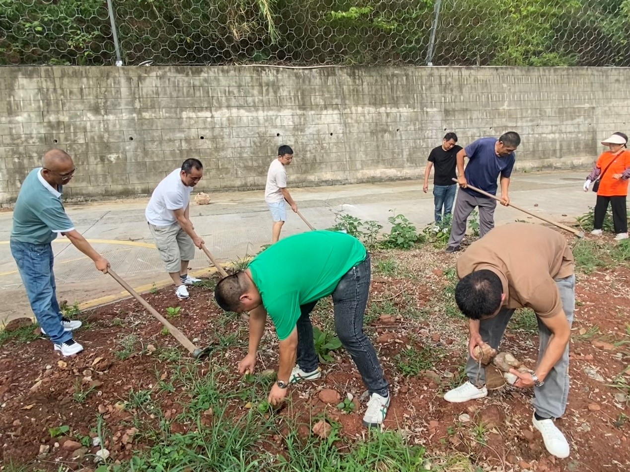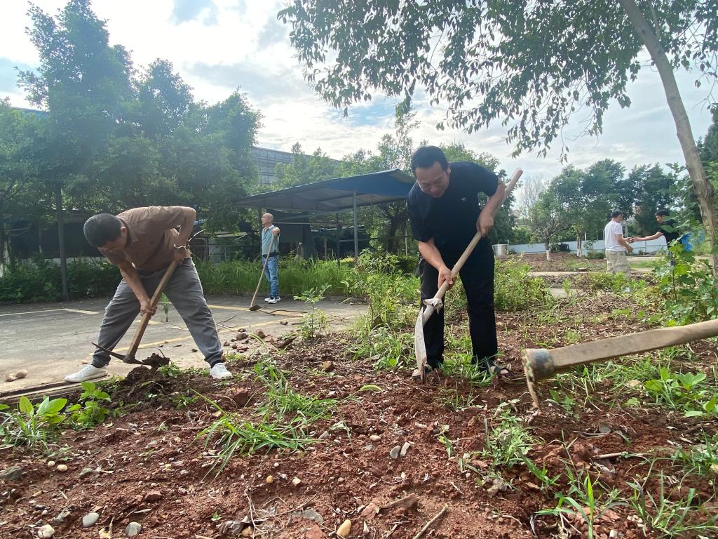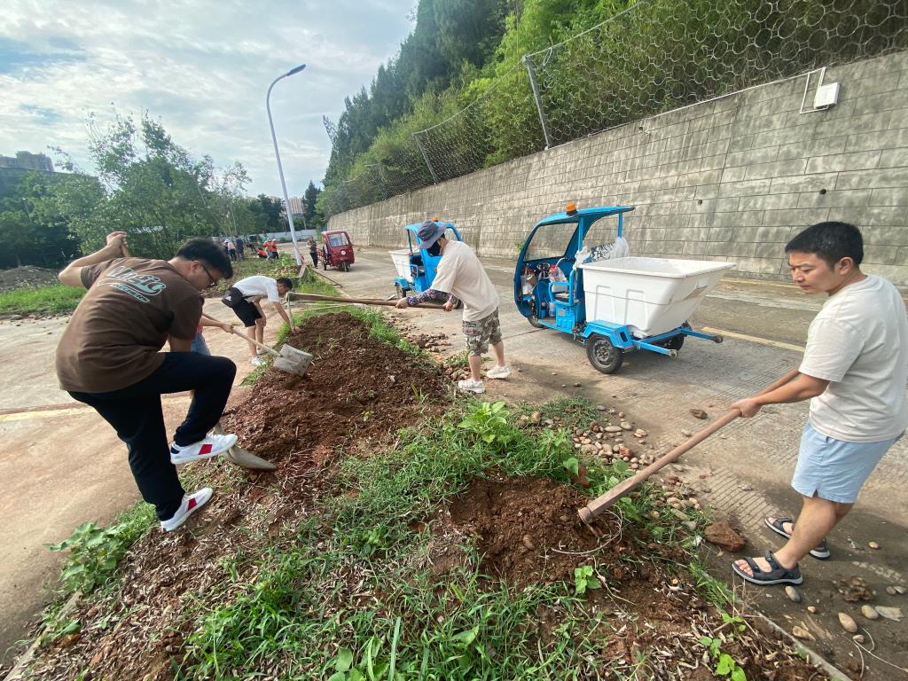活动现场,大家分工明确、干劲十足,有的挥动着锄头铲除杂草,有的用铁锹将绿化带中的枯叶、鹅卵石清理出来,有的用扫把将清理物聚拢在一起,方便清运,尽管天气炎热,汗水湿透了衣衫,但大家没有怨言,呈现出一派热火朝天的劳动景象。