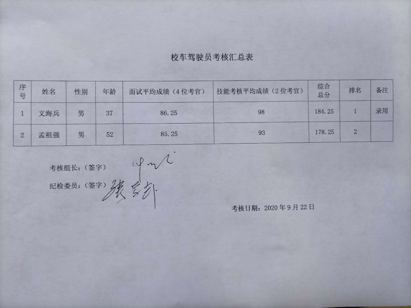 按照招聘流程,后产处对应聘的校车驾驶员岗位的人员进行了面试及技能考核工作,现将结果公示如下: